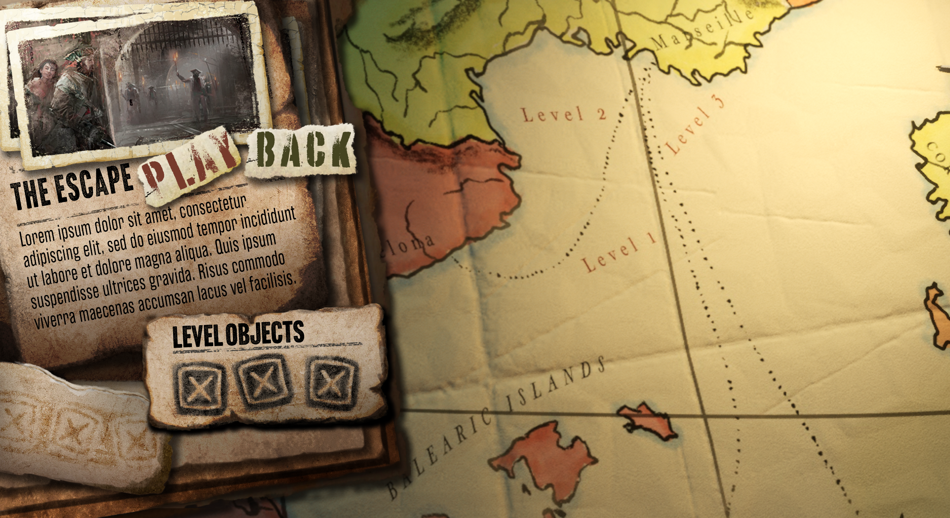 This Project was a level selection screen for a mobile game about a freedom fighter during the 1850’s british time period. it is a 3rd person narrative driven shooter. This was made during my internship at polyphonic technologies. where i was just given the GDD and was told to figure out an innovative and a very optimised way to show the level selector screen with all the princeples of UI/UX design
